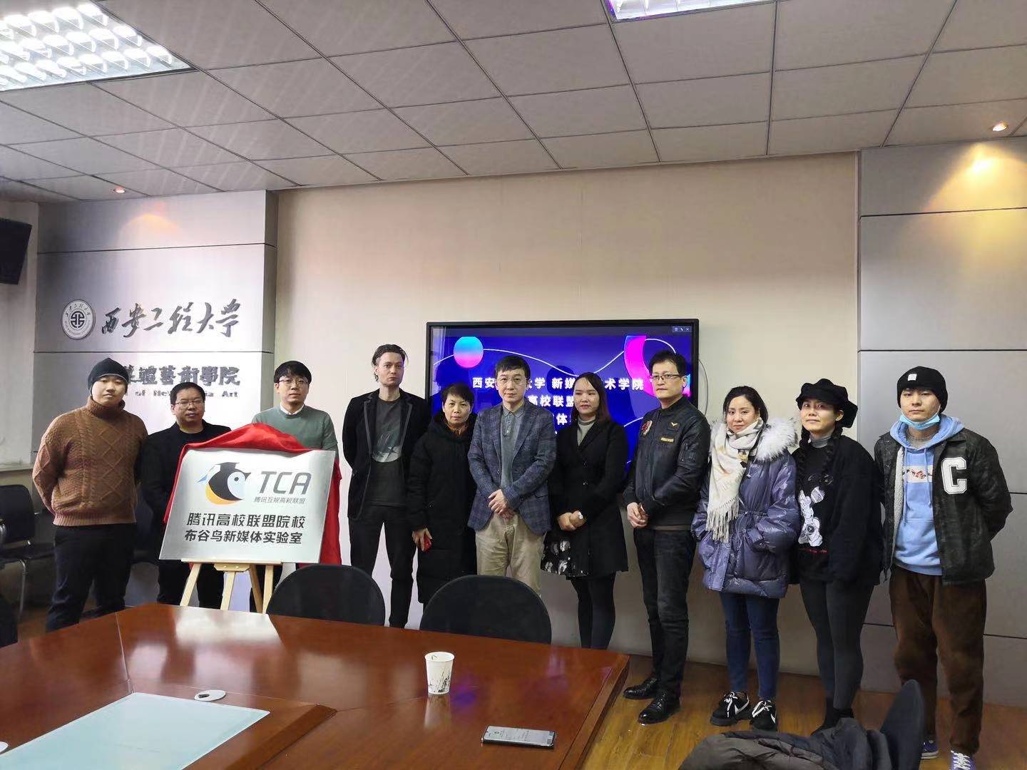 2021年1月7日, 腾讯高校联盟院校布谷鸟新媒体实验室在米高梅 会议室落成。腾讯互娱平台营销部陕西片区市场经理朱莉,米高梅 院长马冬、副院长丛红艳、动画专业教师出席了仪式,仪式由影像动画艺术系主任雷桐主持。