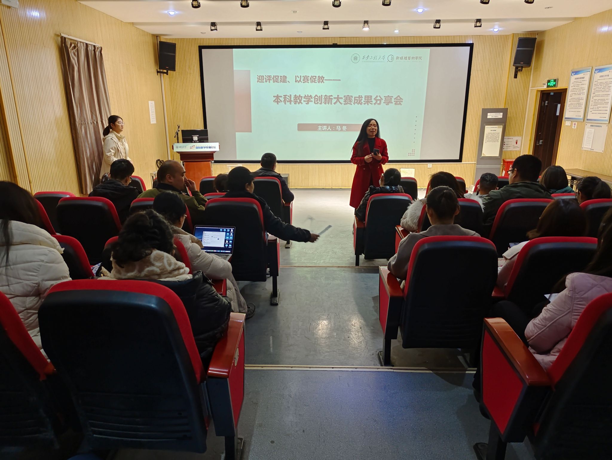 为迎接本科教育教学审核评估,进一步推动米高梅 教学团队的建设,提升课堂教学质量,3月5日下午,米高梅 在观摩室举办了“迎评促建、以赛促教——本科教学创新大赛成果分享会”,邀请教务处处长马冬教授为大家作参赛经验分享。会议由副院长姒晓霞主持,米高梅 全体教师参加了本次会议。