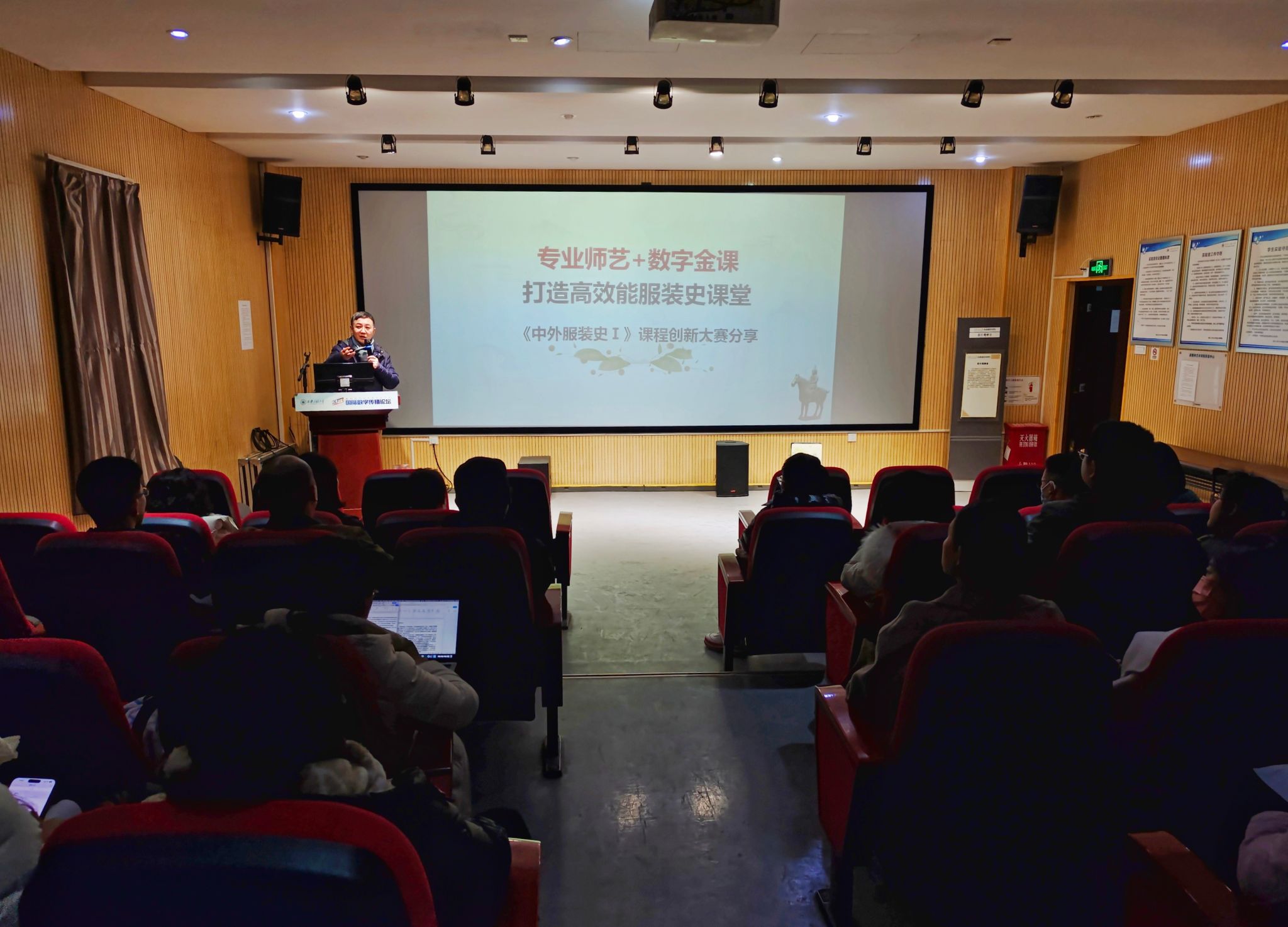 马冬教授主持的《中国服装史﹒唐代人物艺术设定虚拟仿真实验》项目获批国家级虚拟仿真实验一流本科课程,他带领的教学团队获得陕西第五届高校课堂教学创新大赛(本科)二等奖,有丰富的教学经验和参赛经验。分享会上,马冬教授以“专业师艺+数字金课打造高效能课堂”为主题,结合自身参加比赛的经验与教训,强调了前期教学研究准备的重要性。他指出,要有组织的进行教学研究,以科研精神进行教学研究,聚焦于教学中真实的问题,深入剖析,找到痛点,才能提出有针对性地创新理念和方法。创新教学要基于OBE理念,以学生为中心,确保完成“立德树人”的根本任务,结合数字化技术,围绕这三个要点来进行改革。在教学中充分体现学生的主体地位,提炼课程中的优秀传统文化内容,运用传统的教师技能与数字化技术相结合的方式,以分段考核的模式,加强过程考核,提升学生的学习体验,从而调动学生的学习兴趣和积极性。最后,马冬教授分享了参赛感想。他认为,比赛是一种很好的反思和提升的机会。通过比赛,可以发现教学中存在的问题和不足,从而有针对性地调整教学大纲和教案讲稿,提升教学质量。与会教师认真听取并记录,随后与马冬教授积极交流探讨。